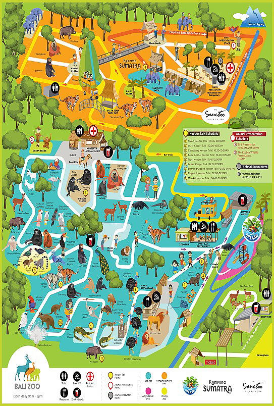 | ウブドへ向かう道筋の、ウブド寄りにあるシンガパドゥと言う所にこのバリズーパークはあります。3.5ヘクタールの土地には南国バリの花々が咲き乱れ、その中に70種類、350頭以上動物が皆様のお出でをお待ちしております。このズーパークの特徴は、何と言っても動物と身近に触れあえる事です。動物のショーを見たり、動物と触れ合って写真を撮ったり、動物に餌をあげたりと動物を身近に感じながら楽しいお時間をお過ごし頂けるバリスーパークは、特にお子様には、喜んでいただけること間違いなしですね~ウブド散策や車チャーターとセットにしたツアーもご用意させて頂きました。後、月~金の夜だけ限定のナイトズーツアー・象さんの背中に乗ってのお散歩エレファントサファリライドも楽しんで頂けると思います。 |