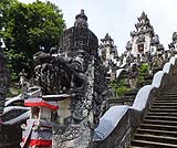 ランプヤン寺院につき、サロンを巻いて階段を昇っていくと、段々と身が引き締まっていくのがわかるはず!パワースポットと言われるこの場所で、どうぞ元気を一杯もらって下さいね。このツアーは最後にバトゥブランでのケチャにクマンギでのインドネシアンディナーをプラスしました。 |